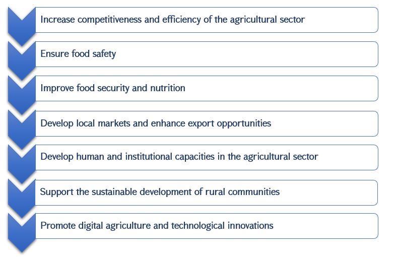 According to the Program of the Government of the Republic of Armenia, approved by Decree N 1363-A of August 18, 2021, the core of agricultural policy will be the intensification of agriculture, increasing productivity, the targeted use of land resources, and the efficient and economical use of water resources. It also focuses on raising the level of food security, developing animal husbandry and plant breeding, introducing modern technologies, promoting the sale and export of produced goods, and increasing the incomes of entities involved in the entire agricultural value chain, including peasant farms, cooperatives, and agri-processors.