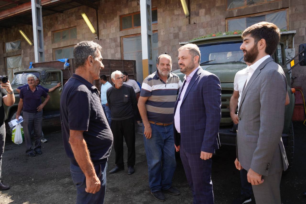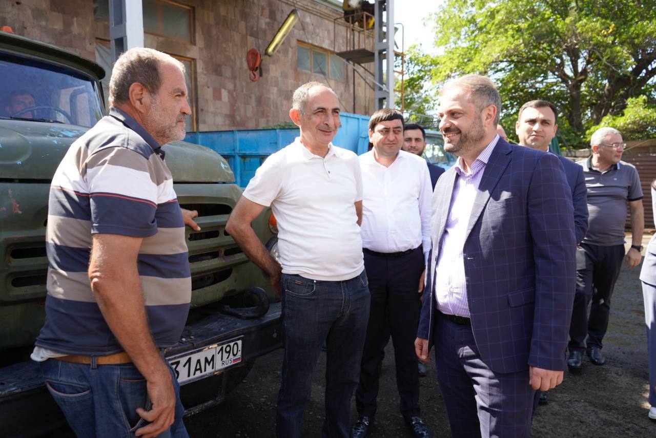 Նախարարի առաջին կանգառը եղել է Մեծամոր համայնքի Ակնալիճ բնակավայրի խաղողի այգում, որտեղ ընթացքի մեջ է խաղողի բերքահավաքը։ Այգին հիմնվել է կառավարության աջակցության ծրագրով՝ 0 տոկոս վարկով։ Ընդհանուր տարածքը 20 հեկտար է․ օրական բերքը կազմում է 20–25 տոննա։ Այգում ներդրված է կաթիլային ոռոգման համակարգ։