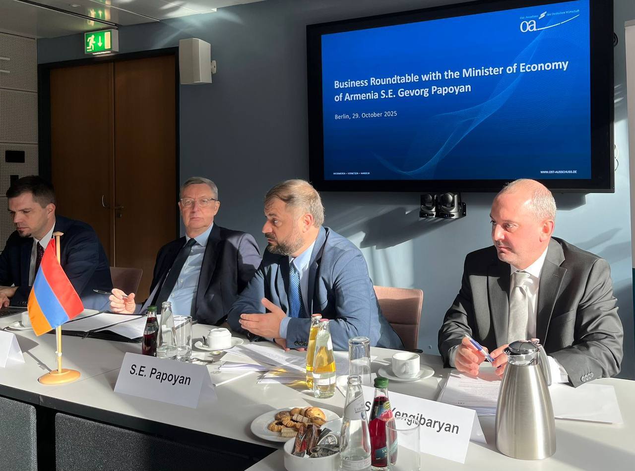 ՀՀ էկոնոմիկայի նախարար Գևորգ Պապոյանի գլխավորած պատվիրակությունը հոկտեմբերի 29-31-ը գտնվում է Գերմանիայի Դաշնային Հանրապետության մայրաքաղաք Բեռլինում։