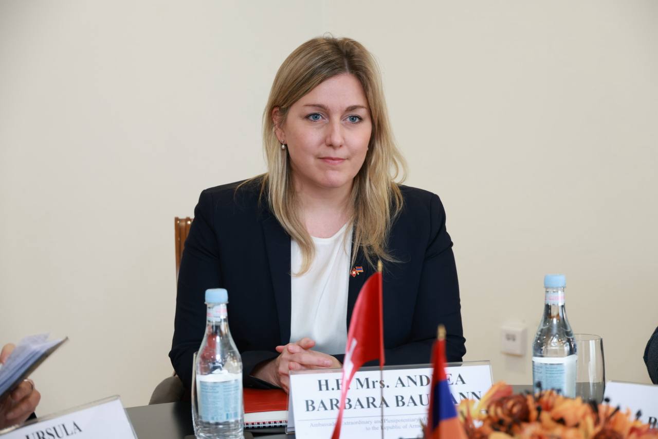 ՀՀ էկոնոմիկայի նախարար Գևորգ Պապոյանը դեկտեմբերի 17-ին ընդունել է Հայաստանի Հանրապետությունում Շվեյցարիայի Համադաշնության նորանշանակ արտակարգ և լիազոր դեսպան Անդրեա Բարբարա Բաումանին:
