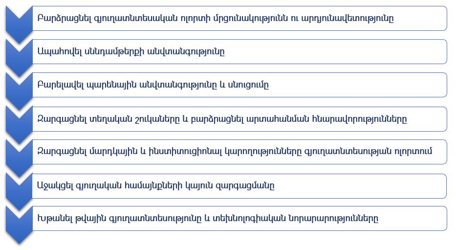 Գյուղատնտեսության ոլորտում միջնաժամկետ ժամանակահատվածում պետական քաղաքականությունը նպատակաուղղված է․
