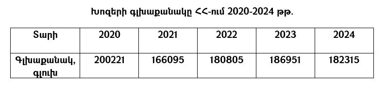Հանրապետությունում տարեկան արտադրվում է 16-18 հազար տոննա խոզի միս (սպանդային քաշով):