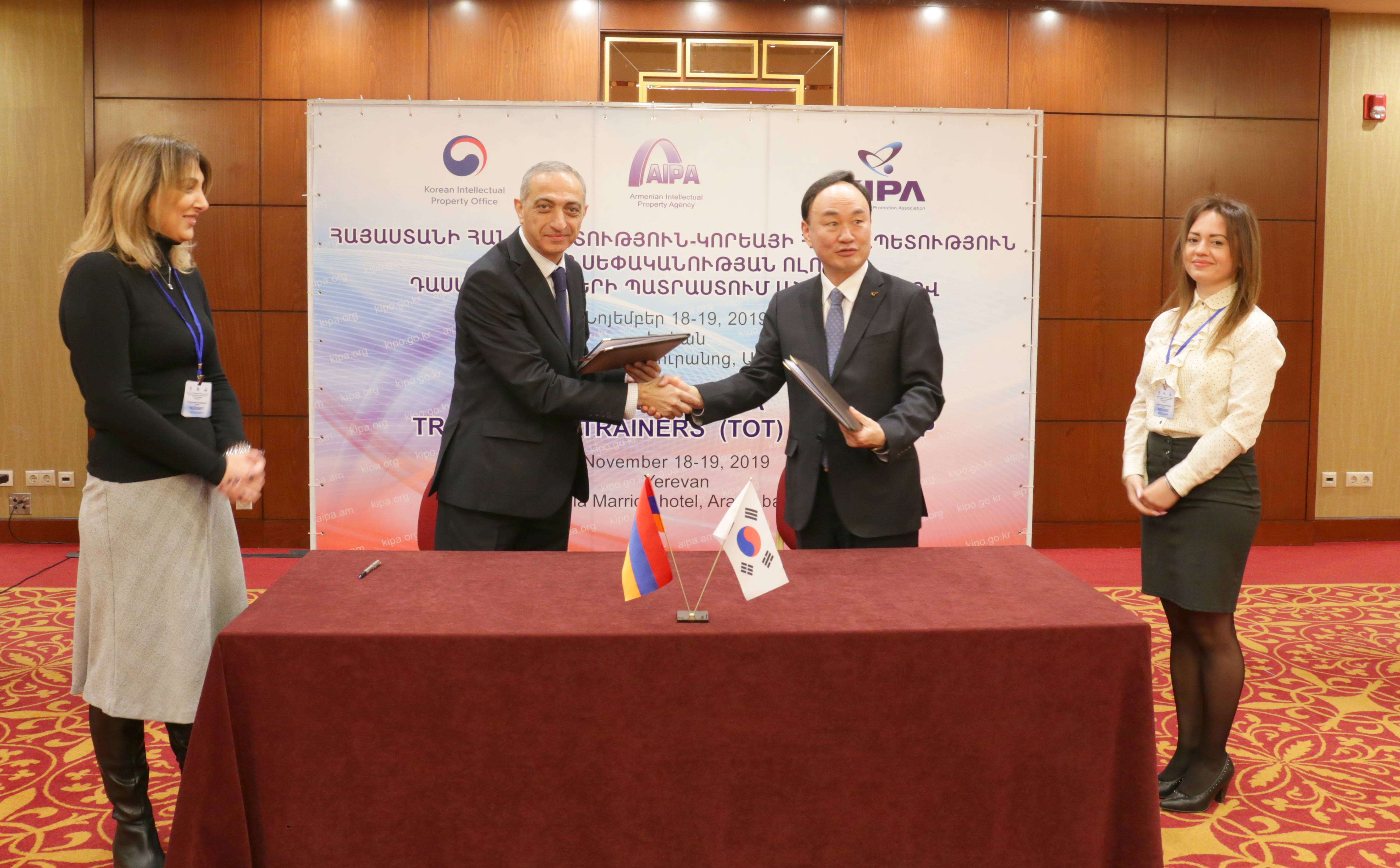 Հուշագիրը ստորագրել են Մտավոր սեփականության գործակալության պետ Երեմ Չախոյանը և Կորեայի գյուտարարության խթանման ասոցիացիայի նախագահ Ջունիո Կոն։