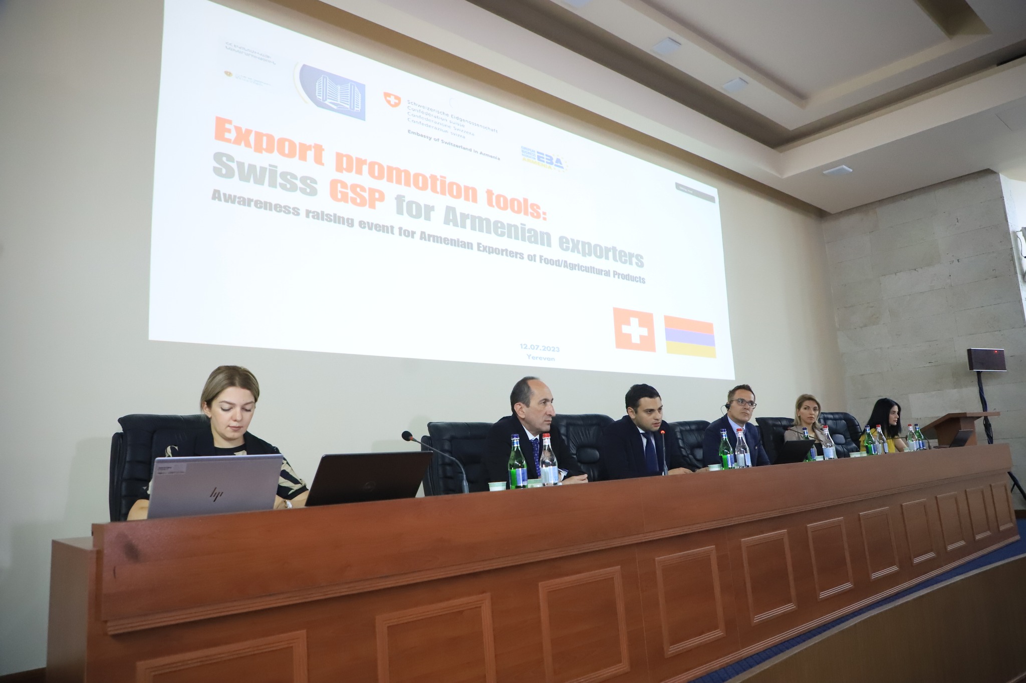 Հուլիսի 12-ին տեղի է ունեցել «Արտահանման խթանման գործիքներ՝ Շվեյցարիայի Համադաշնության կողմից տրամադրվող «Արտոնությունների ընդհանրացված համակարգ» (Swiss GSP) հայկական արտահանողների համար» խորագրով իրազեկման միջոցառումը, որը կազմակերպվել էր ՀՀ էկոնոմիկայի նախարարության և Հայաստանում Շվեյցարիայի դեսպանության կողմից՝ Եվրոպական Բիզնես Ասոցիացիայի աջակցությամբ: