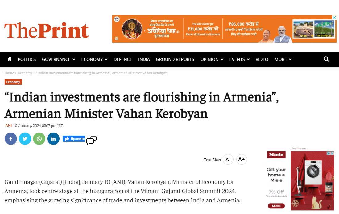 էկոնոմիկայի նախարար Վահան Քերոբյանի մասնակցությանը՝ Հնդկաստանի Գուջարաթ նահանգում հունվարի 10-11-ը անցկացվող 10-րդ «Կենսունակ Գուջարաթ» համաշխարհային գագաթնաժողովին (Vibrant Gujarat Global Summit)։