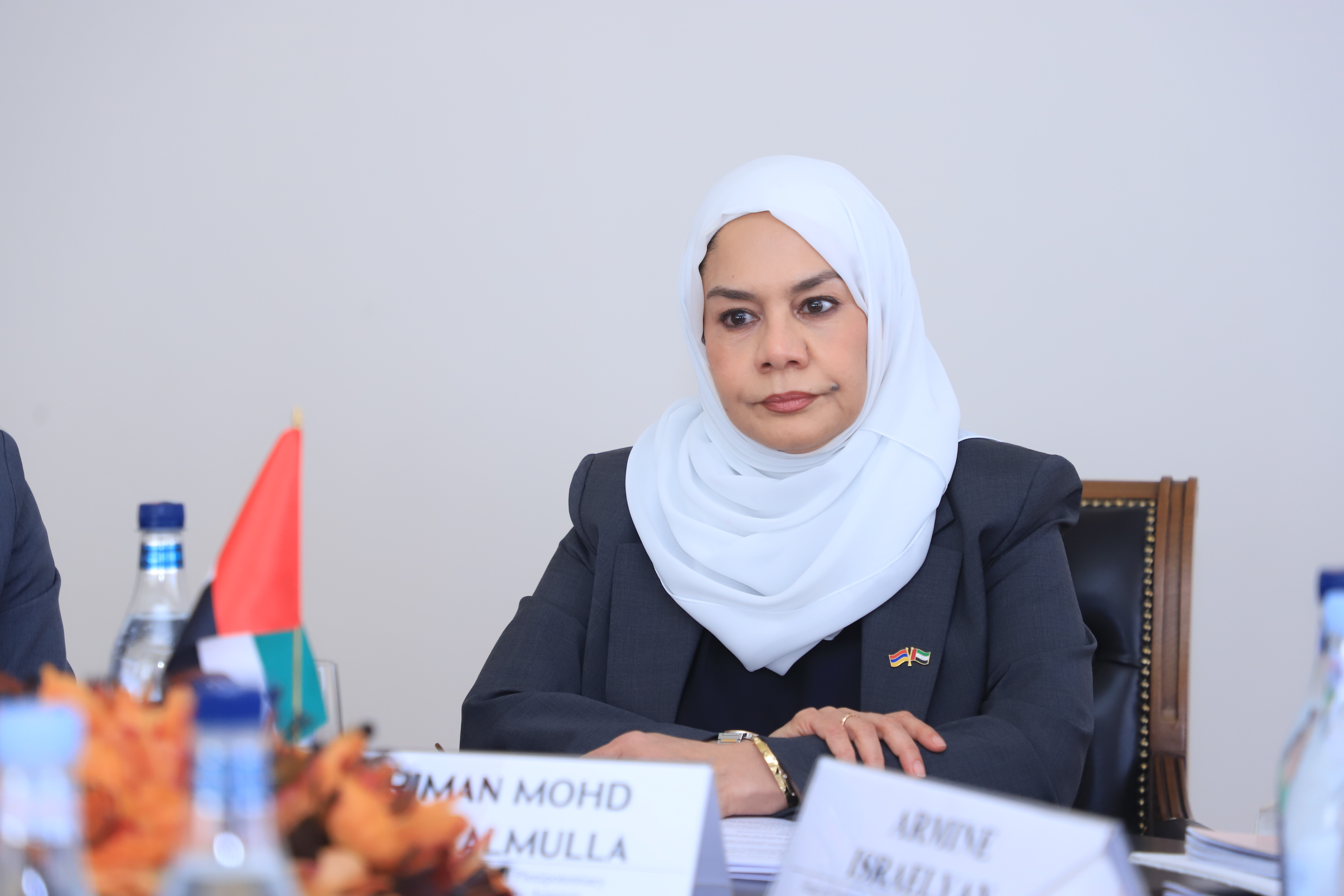 Նախարար Գևորգ Պապոյանն ապրիլի 19-ին ընդունել է Հայաստանի Հանրապետությունում Արաբական Միացյալ Էմիրությունների (ԱՄԷ) նորանշանակ արտակարգ և լիազոր դեսպան Նարիման Մուհամմեդ Շարիֆ Ալ Մուլլային: