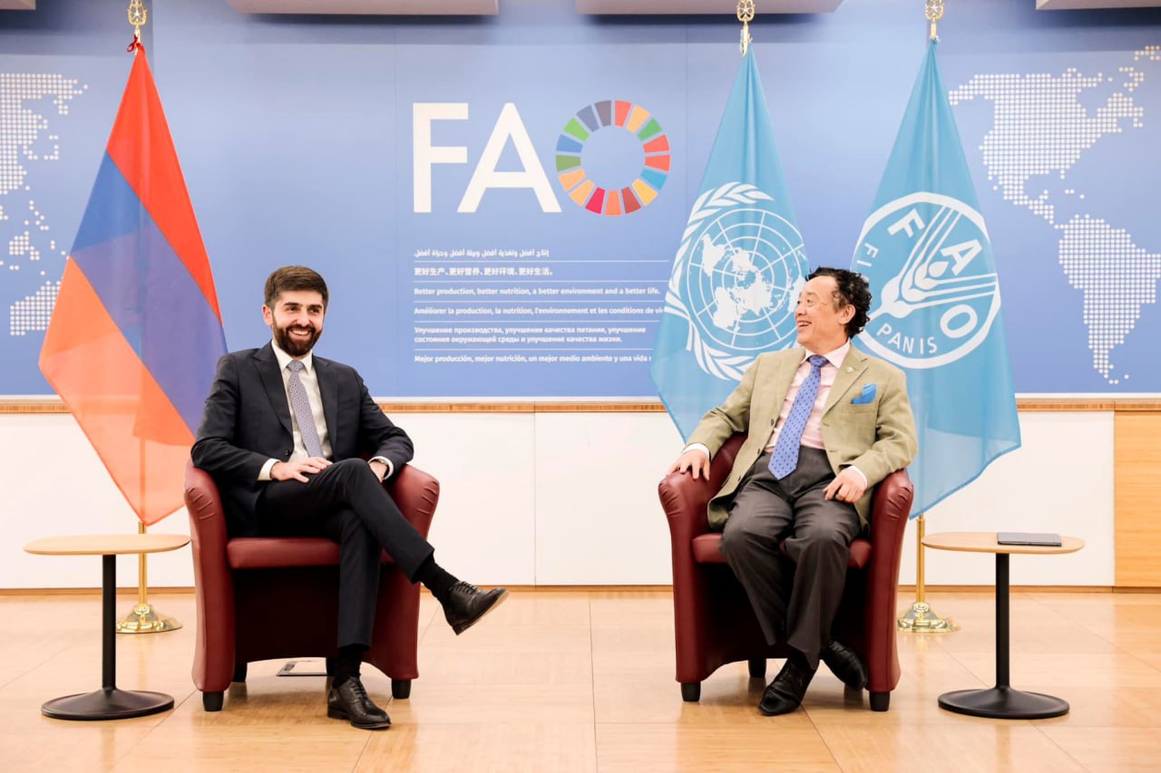 Այցի շրջանակներում Արման Խոջոյանը հանդիպել է ՄԱԿ ՊԳԿ-ի (FAO) գլխավոր տնօրեն Քու Դոնգյուի հետ: Կողմերը անդրադարձել են պարենային համակարգերի ամրապնդման և կայունացման հիմնախնդիրներին կլիմայի փոփոխության համատեքստում: