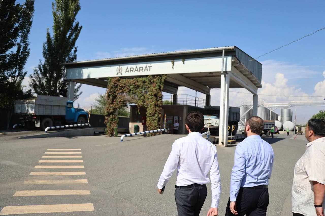 Նախարարի հաջորդ կանգառը «Երևանի կոնյակի գործարան» ՓԲԸ-ի Արարատի մասնաճյուղում էր։ Այստեղ մթերումները մեկնարկել են այսօր․ միայն այս մասնաճյուղում նախապես կնքվել է 12 հազար տոննա խաղողի մթերման պայմանագիր, մթերման գինը սահմանվել է 140 դրամից սկսած։ Ընկերության Արմավիրի մասնաճյուղում մթերումները նախօրեին են մեկնարկել, իսկ Բերդի մասնաճյուղում կմեկնարկեն առաջիկայում։