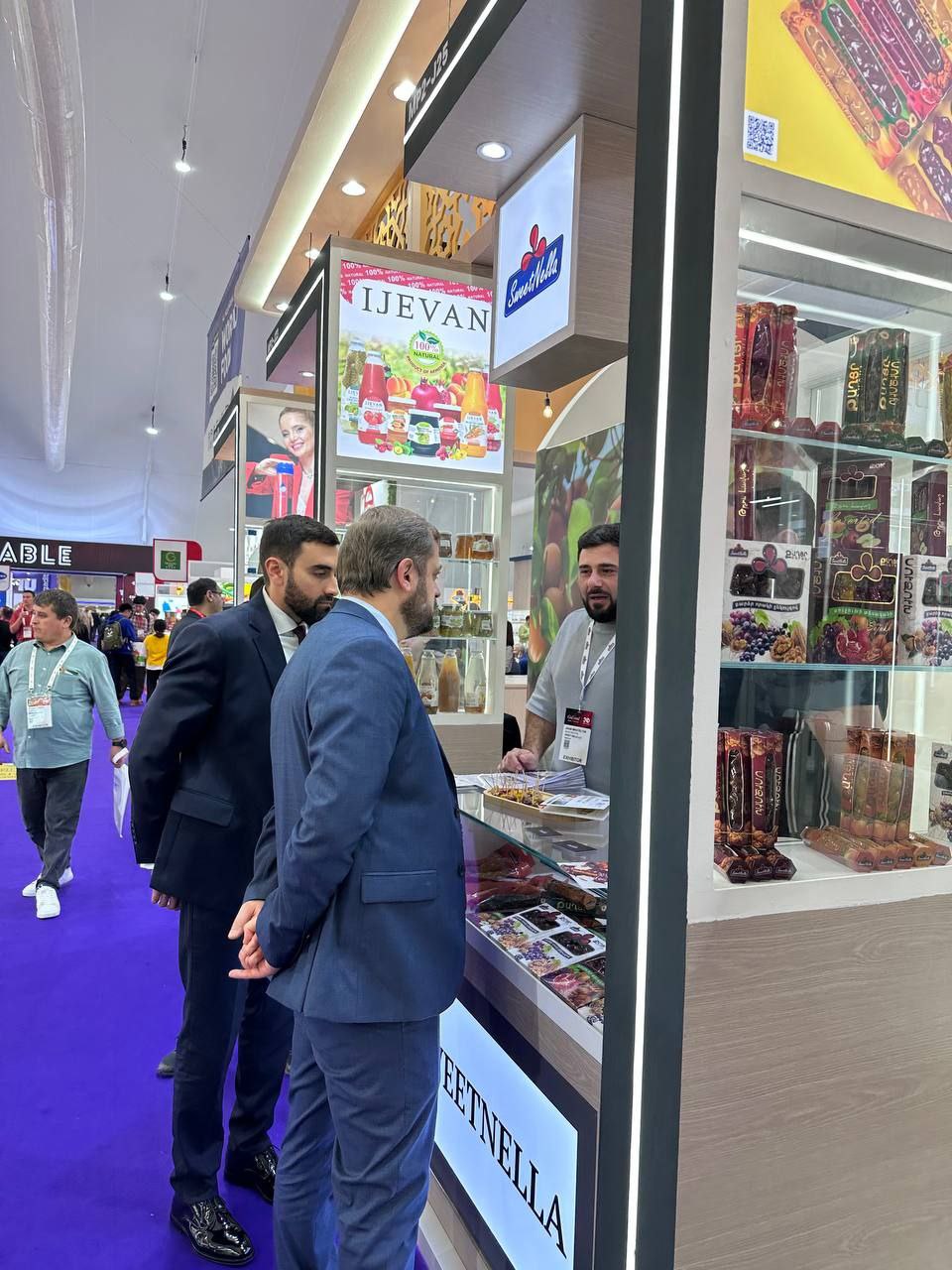 Գևորգ Պապոյանը շրջել է ցուցահանդեսի տաղավարներով, ծանոթացել հայկական տաղավարներում ներկայացված արտադրանքին։ Նախարարը հետաքրքրվել է մասնակիցների տպավորություններով և լսել նրանց առաջարկները մասնակցության արդյունավետությունը բարձրացնելու ուղղությամբ։