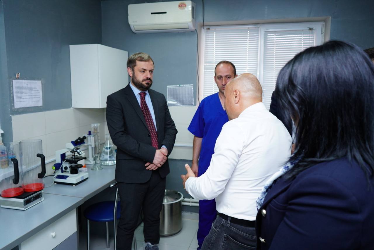 Տնօրեն Արման Օհանյանի ուղեկցությամբ նախարարը շրջել է ընկերությունում, խոզերի գենետիկ կենտրոնի լաբորատորիայում։