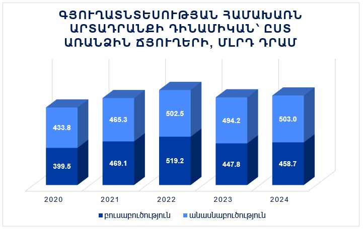 Գյուղատնտեսությունը երկրի տնտեսության առանցքային ոլորտներից մեկն է, որն ապահովում է ՀՆԱ-ի 7.8 %-ը (2024 թվականի տվյալներով)։ Գյուղատնտեսության համախառն արտադրանքի 90.8 %-ն ապահովում են շուրջ 317 հազար գյուղացիական տնտեսություններ, որոնցից յուրաքանչյուրին միջինը բաժին է ընկնում շուրջ 1.48 հա հողատարածք։ Հայաստանի Հանրապետության զբաղվածների 17.6 %-ն ընդգրկված է գյուղատնտեսության ոլորտում։