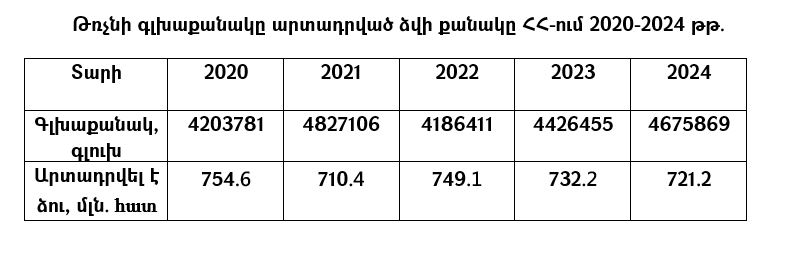 Հանրապետությունում տարեկան արտադրվում է շուրջ 800 մլն ձու և 16․0 հազար տոննա թռչնամիս: