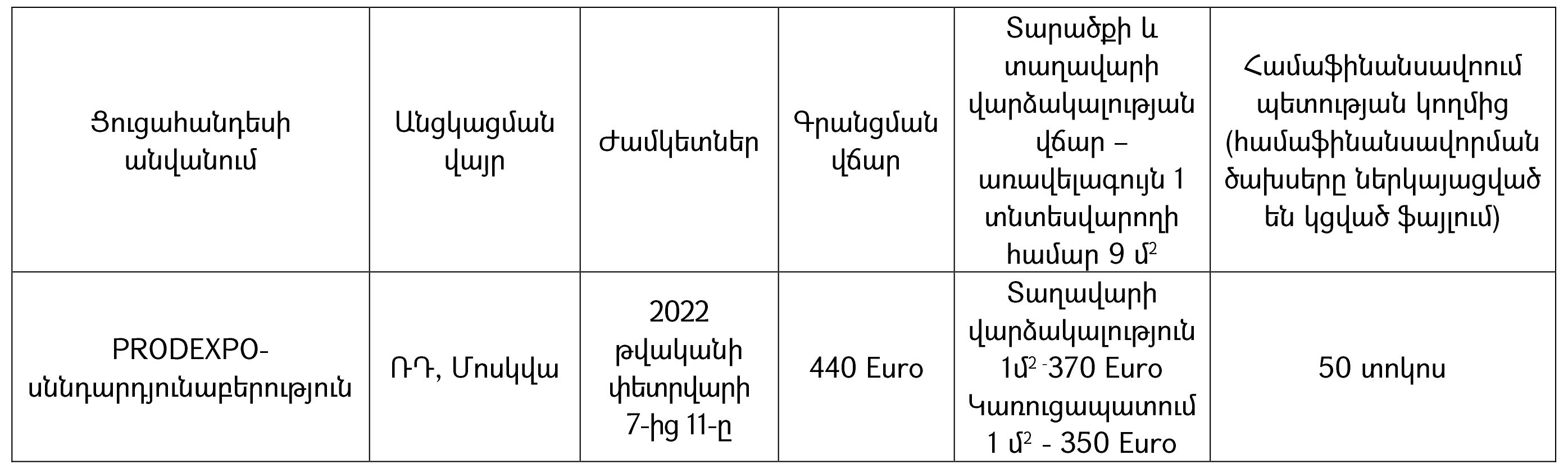 Մեկնարկել է PRODEXPO միջազգային ցուցահանդեսին մասնակցության հայտերի ընդունումը