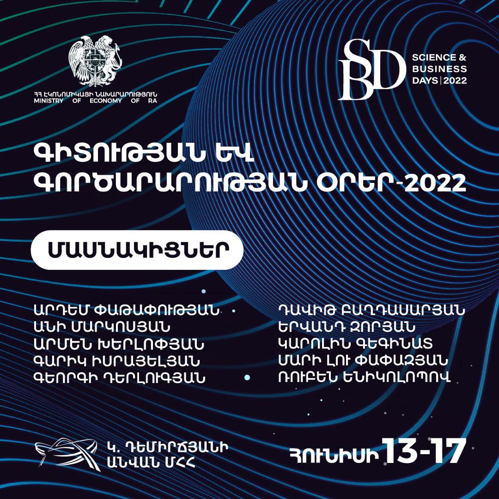 ՀՀ էկոնոմիկայի նախարար Վահան Քերոբյանի նախաձեռնությամբ և նախարարության հովանու ներքո հունիսի 13-17-ը Երևանում կանցկացվի «Գիտության և գործարարության օրեր» միջոցառումը, որին մասնակցելու համար Հայաստան կժամանի մոլեկուլային կենսաբան, նյարդաբան, բժշկության 2021թ. Նոբելյան մրցանակակիր, պրոֆեսոր Արդեմ Փաթափությանը, ինչպես նաև համաշխարհային ճանաչում ունեցող հայազգի գիտնականներ։
