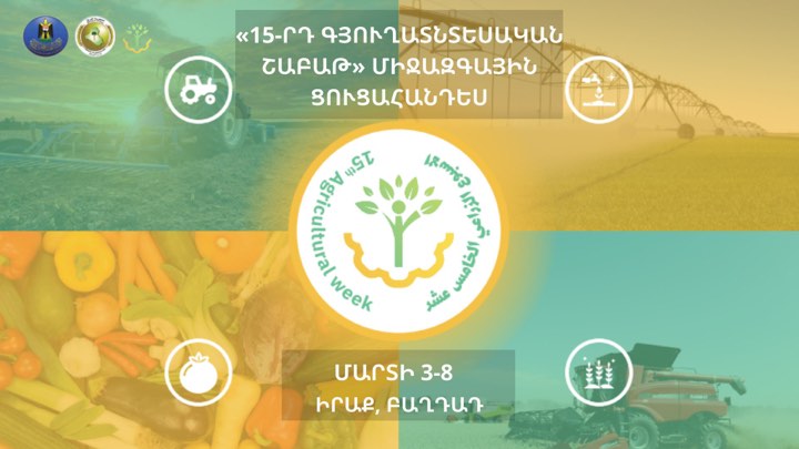 Հայտնում ենք, որ 2024 թվականի մարտի 3-8-ը Իրաքի Բաղդադ քաղաքում կայանալու է գյուղատնտեսական և անասնաբուծական արտադրանքի մեքենայացված թողարկման համար նախատեսված «15-րդ գյուղատնտեսական շաբաթ» միջազգային ցուցահանդեսը։