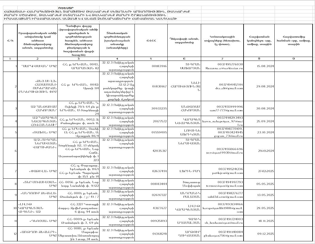 ՀԱՅԱՍՏԱՆԻ ՀԱՆՐԱՊԵՏՈՒԹՅԱՆ ՏԱՐԱԾՔՈՒՄ ԹԱՆԿԱՐԺԵՔ ՄԵՏԱՂՆԵՐԻ ԱՐՏԱԴՐՈՒԹՅՈՒՆ, ԹԱՆԿԱՐԺԵՔ ՔԱՐԵՐԻ ՄՇԱԿՈՒՄ, ԹԱՆԿԱՐԺԵՔ ՄԵՏԱՂՆԵՐԻ ԵՎ ԹԱՆԿԱՐԺԵՔ ՔԱՐԵՐԻ ՇՐՋԱՆԱՌՈՒԹՅՈՒՆ ԻՐԱԿԱՆԱՑՆՈՂ ԻՐԱՎԱԲԱՆԱԿԱՆ ԱՆՁԱՆՑ ԵՎ ԱՆՀԱՏ ՁԵՌՆԱՐԿԱՏԵՐԵՐԻ ՀԱՇՎԱՌՄԱՆ ԿԱՆԳՆԵԼՈՒ ՌԵԵՍՏՐ