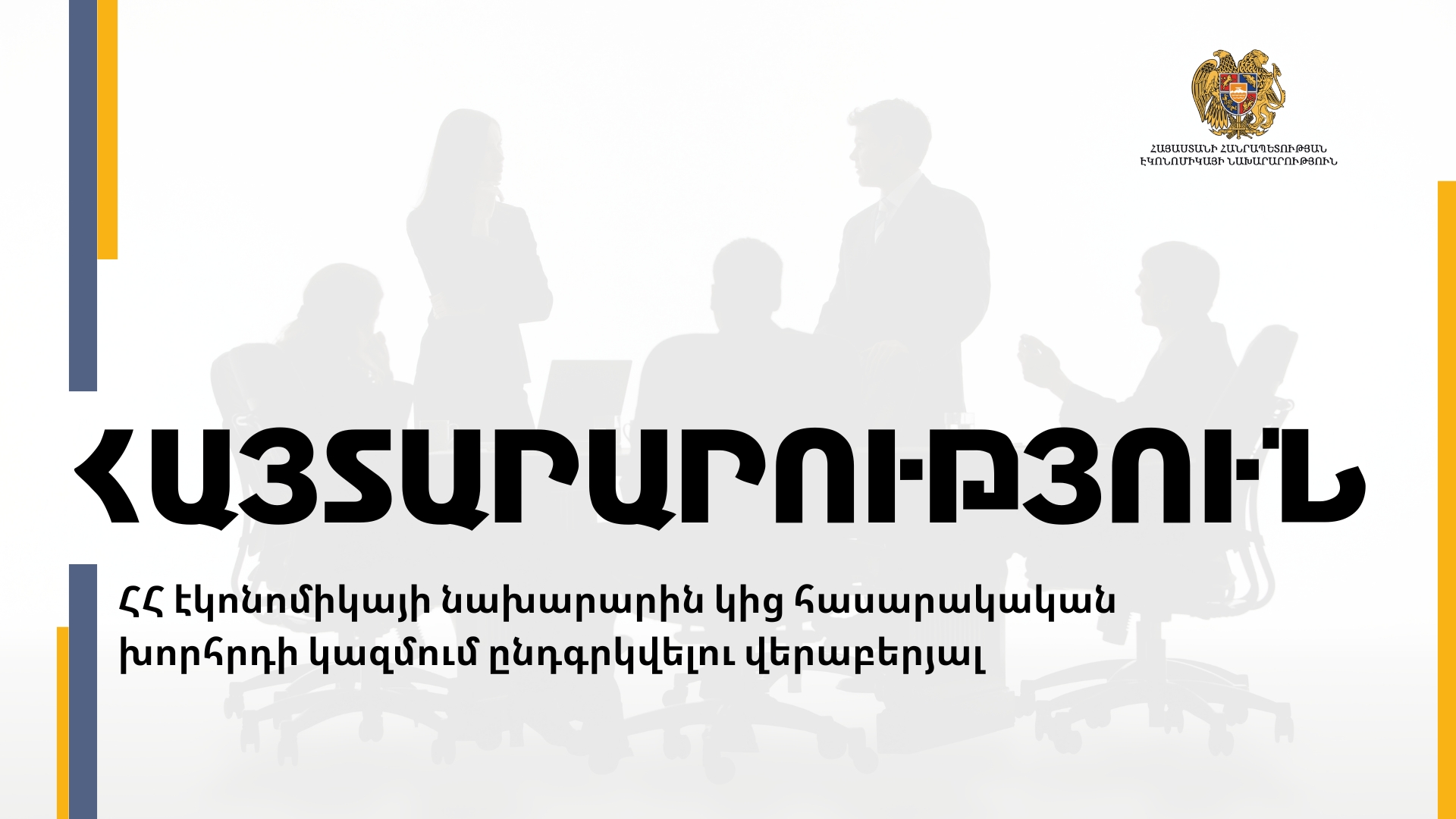«ՀՀ էկոնոմիկայի նախարարին կից հասարակական խորհուրդ ստեղծելու և դրա աշխատակարգը, խորհրդի ձևավորման կարգը հաստատելու մասին» ՀՀ էկոնոմիկայի նախարարի 04․11․2025թ.-ի 3345-L Հրաման