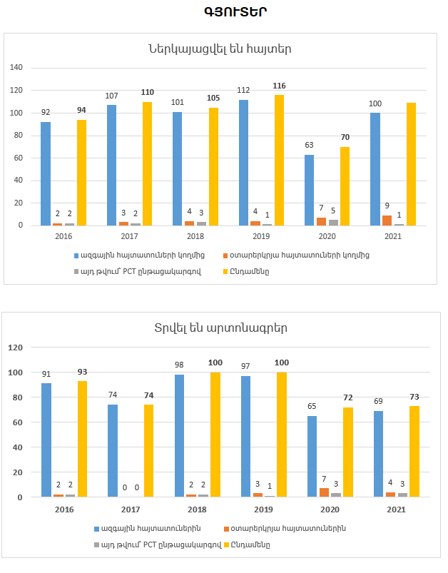 The Office of intellectual property is a detached subdivision of the Ministry of Economy, which implements the legal protection of intellectual property, provides trainings for the personnel, assists with the RA state patent fund replenishment, as well as implements other activities related to the field of intellectual property.