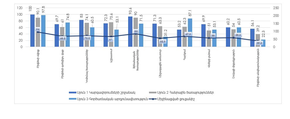 Այս ոլորտներում Հայաստանը գերազանցել է համաշխարհային միջին ցուցանիշները՝ դիրքավորվելով բարձր գնահատվող երկրների շարքում։
